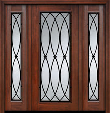 WDMA 56x80 Door (4ft8in by 6ft8in) French Cherry IMPACT | 80in 3/4 Arch Lite Privacy Glass Door /2side