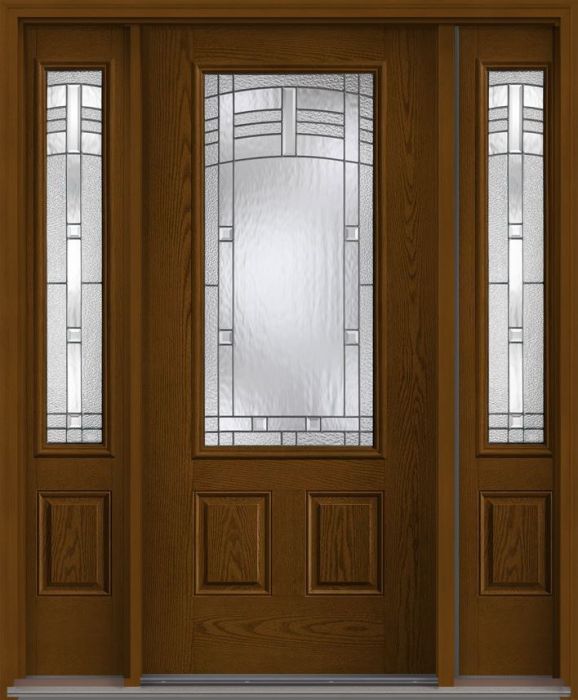 WDMA 62x80 Door (5ft2in by 6ft8in) Exterior Oak Maple Park 3/4 Lite 2 Panel Fiberglass Door 2 Sides