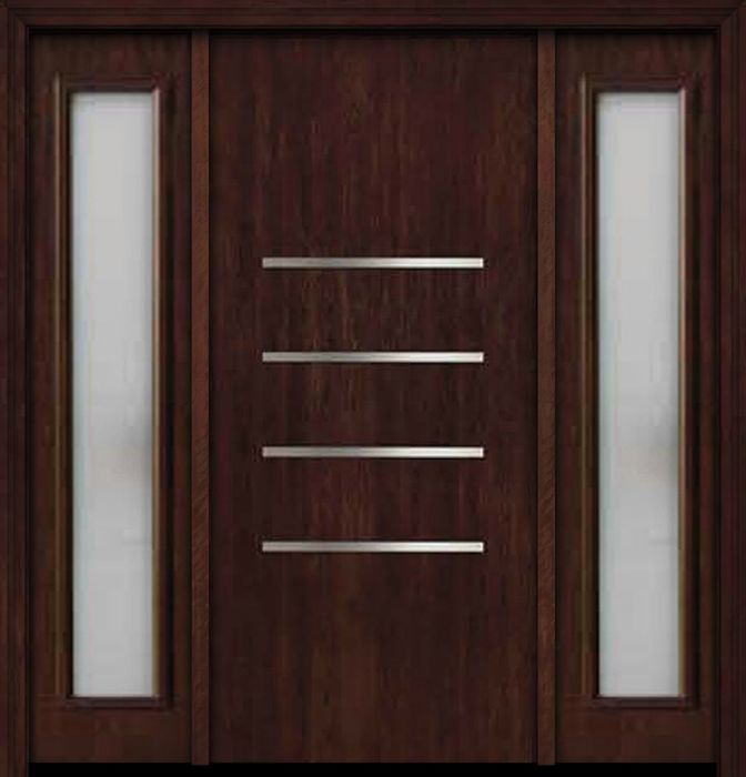 WDMA 64x80 Door (5ft4in by 6ft8in) Exterior Cherry Contemporary Stainless Steel Bars Single Fiberglass Entry Door Sidelights FC671SS