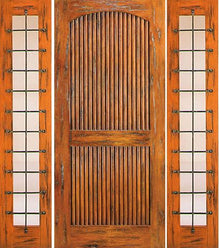 WDMA 66x80 Door (5ft6in by 6ft8in) Exterior Knotty Alder Door with Two Sidelights 3-Panel