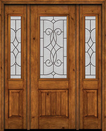 WDMA 54x96 Door (4ft6in by 8ft) Exterior Knotty Alder 96in Alder Rustic Plain Panel 2/3 Lite Single Entry Door Sidelights Ashbury Glass