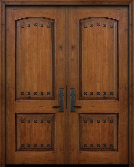 WDMA 64x96 Door (5ft4in by 8ft) Exterior Knotty Alder 96in Double 2 Panel Arch Door with Clavos