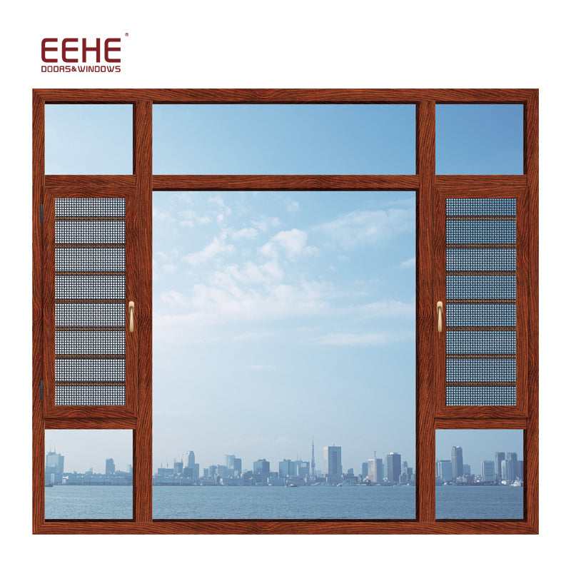 Nigeria Aluminum Window Casement Window With Mosquito Net Frame Details Product Description Type aluminum casement window Aluminum profiles Material: aluminum alloy 6063-T5 Color: gray/champagne color/wood grain/white/black or other customized colors Thickness: 1.2mm/1.4mm/2.0mm/2.5mm, etc Surface finish 1.powder coating 2.electrophoresis 3.heat transfer for wood grain 4.PVDF coating Glass Material : Single glass,Double glass,tempered glass , floating glass ,insulating glass, reflective glass,laminated glass,low-E glass Color : clear /gray /green/frosted, etc Single :4mm to 12mm Double :5mm+9A+5mm 6mm+12A+6mm, etc Triple : 5mm+6A+5mm+6A+5mm,etc Sealing EPDM rubber and silicone sealant Hardware SIEGENIA,HOPO,HOPPE,Kinglong,Chinese Brand,etc Package...