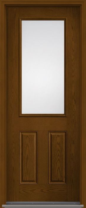 WDMA 34x96 Door (2ft10in by 8ft) Exterior Oak Low-E 8ft Half Lite 2 Panel Fiberglass Single Door