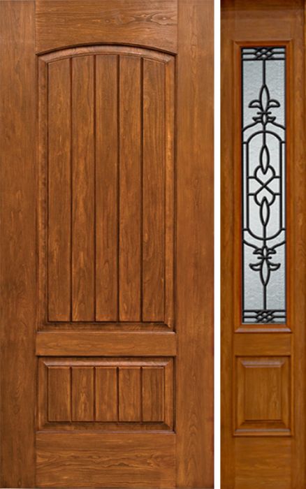 WDMA 44x80 Door (3ft8in by 6ft8in) Exterior Cherry Plank Two Panel Single Entry Door Sidelight 3/4 Lite w/ JA Glass Attributes Table