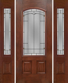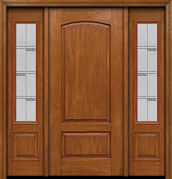 WDMA 58x80 Door (4ft10in by 6ft8in) Exterior Cherry Two Panel Camber Single Entry Door Sidelights Crosswalk Glass