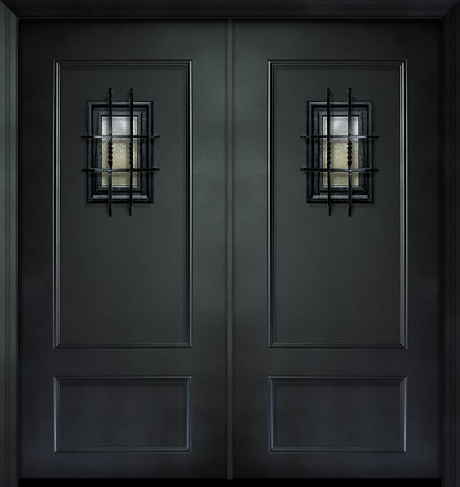 WDMA 64x80 Door (5ft4in by 6ft8in) Exterior 80in ThermaPlus Steel 2 Panel Double Door with Speakeasy Attributes Table