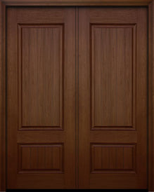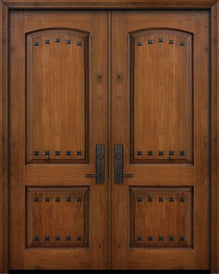 WDMA 64x96 Door (5ft4in by 8ft) Exterior Knotty Alder 96in Double 2 Panel V-Grooved Estancia Alder Door with Speakeasy / Clavos Attributes Table