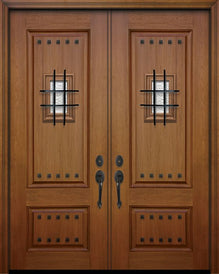 WDMA 64x96 Door (5ft4in by 8ft) Exterior Mahogany IMPACT | 96in Double 2 Panel Square V-Grooved Door with Speakeasy / Clavos