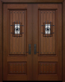 WDMA 64x96 Door (5ft4in by 8ft) Exterior Mahogany IMPACT | 96in Double 2 Panel Square Door with Speakeasy / Clavos