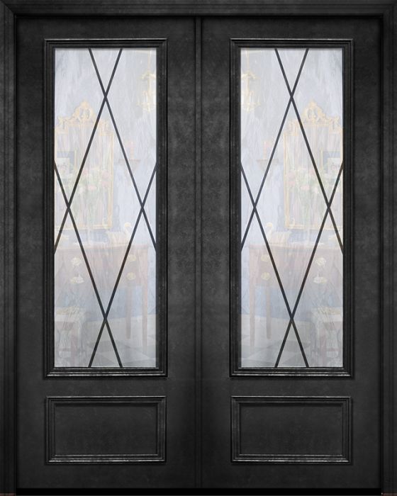 WDMA 64x96 Door (5ft4in by 8ft) Exterior 96in ThermaPlus Steel Sandringham 1 Panel 3/4 Lite Double Door