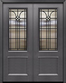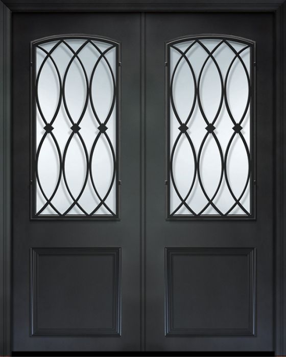 WDMA 64x96 Door (5ft4in by 8ft) Exterior 96in ThermaPlus Steel La Salle 1 Panel 2/3 Arch Lite Double Door