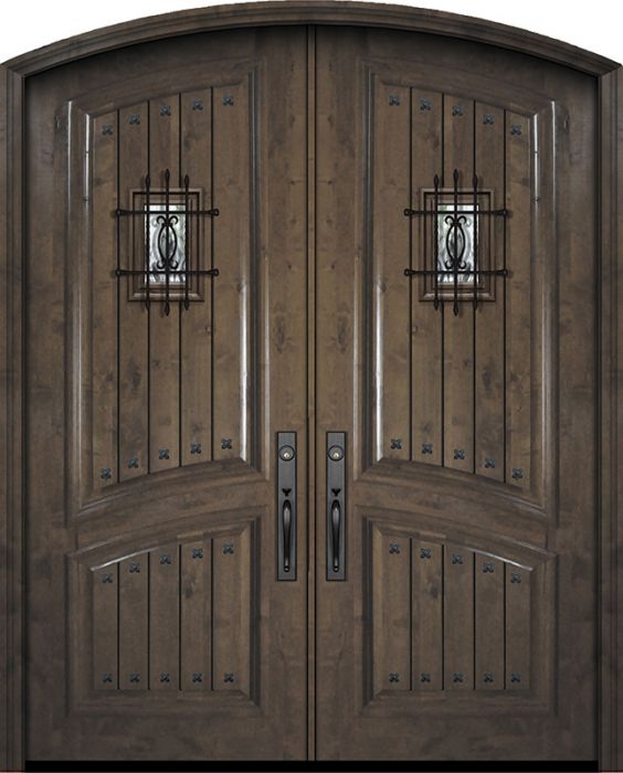 WDMA 72x96 Door (6ft by 8ft) Exterior Knotty Alder 36in x 96in Double Arch Top 2 Panel V-Grooved Estancia Alder Door with Speakeasy / Clavos