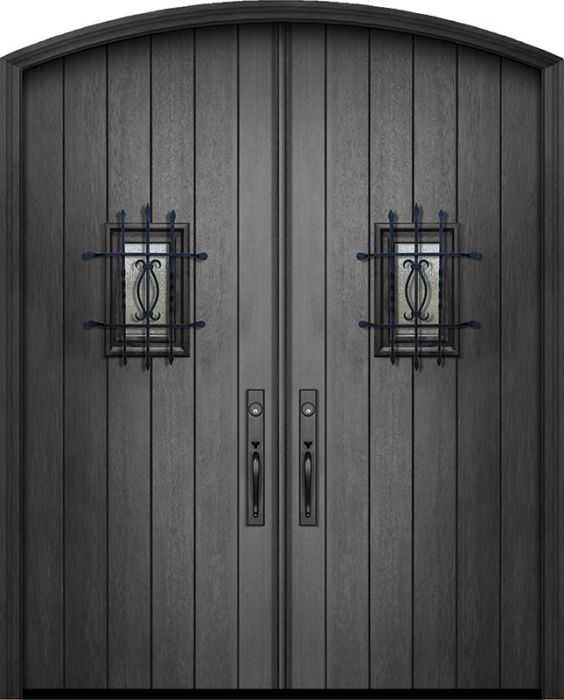 WDMA 72x96 Door (6ft by 8ft) Exterior Mahogany 96in Double Plank Arch Top Door with Speakeasy
