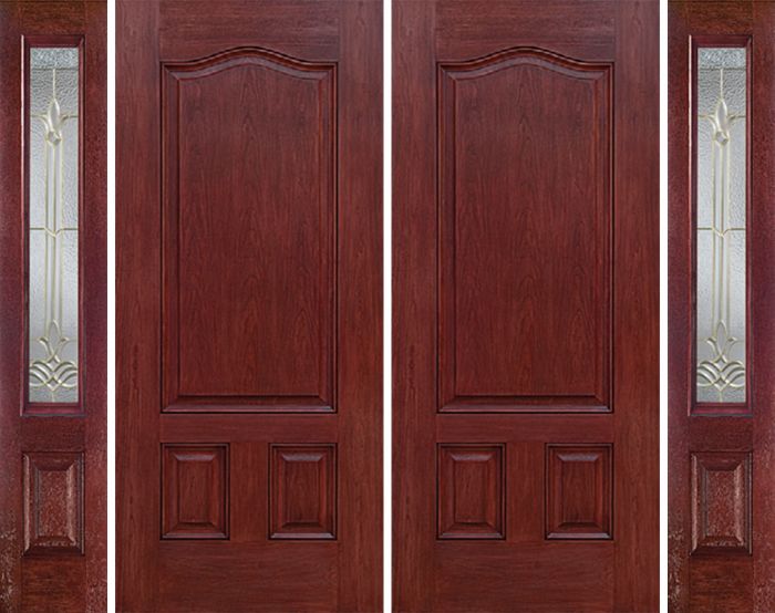 WDMA 84x80 Door (7ft by 6ft8in) Exterior Cherry Three Panel Double Entry Door Sidelights BT Glass Attributes Table