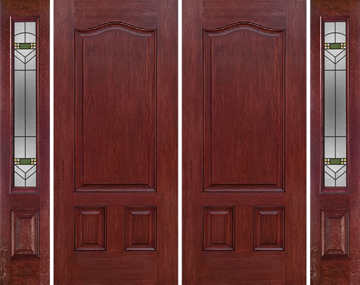 WDMA 84x80 Door (7ft by 6ft8in) Exterior Cherry Three Panel Double Entry Door Sidelights GR Glass