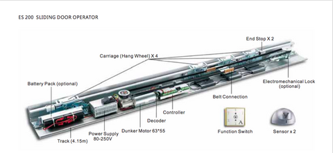 Caesar ES200 three panel aluminum smart patio triple automatic sliding doors with frame for patio Product Description Automatic Sliding Door Operator Caesar ES 200 automatic sensor glass sliding door Advantage Flexible, simple and modular---with drive power to spare. Components Minidrive Unit, Transformer,Motor,Decoder, Basic control module, FunctionModule, Track, Battery Pack(optional), Carrier, Return Pully Service cover holderEnd stop, Door bracket, Belt connection, Belt tensioning device ,Glass clamping rail Optional Equipment Electro-mechanical lock(bistable), Manual release of electro-mechanical lock, Light barriers, Backup battery pack Switch Mode Switch mode power supply unit, AC100~240V, Wide range CS-ESPDA...