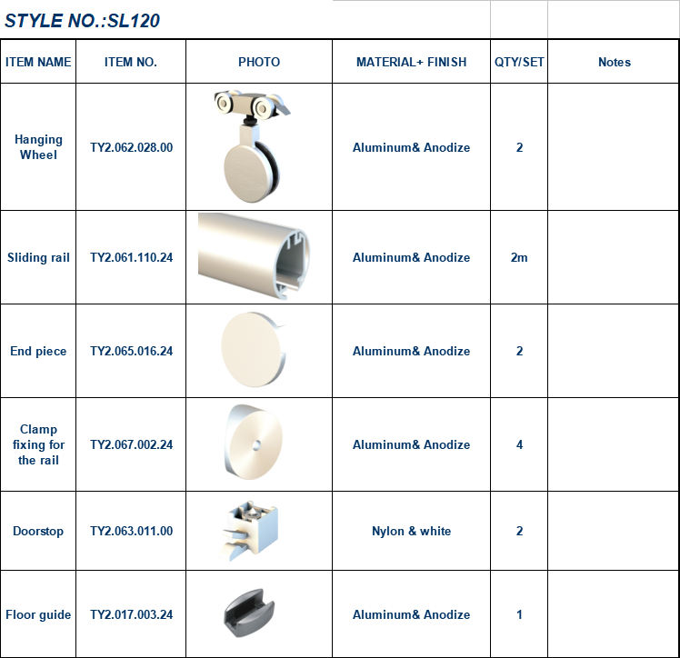 Tengyu Metal Product Product Description Aluminum Round Track Barn Door Hardware Classic style sliding glass door system Features:Modern sliding glass door use for office, hotel, home, industry.Accommodates doors up to 80kgConstructed from aluminum for long product lifeIncludes all mounting hardware and detailed instructions for a quick and easy installationTested to...