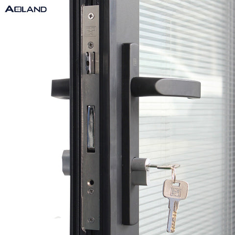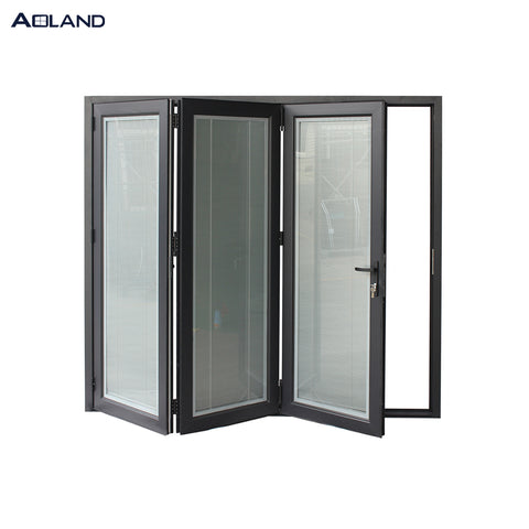 Bifold door entry doors with blinds inserted for privacy on China WDMA
