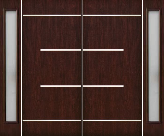 WDMA 100x80 Door (8ft4in by 6ft8in) Exterior Cherry Contemporary Stainless Steel Bars Double Fiberglass Entry Door Sidelights FC673SS