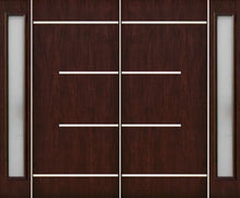 WDMA 100x80 Door (8ft4in by 6ft8in) Exterior Cherry Plank Panel 3/4 Lite Double Entry Door Sidelights Courtyard Glass