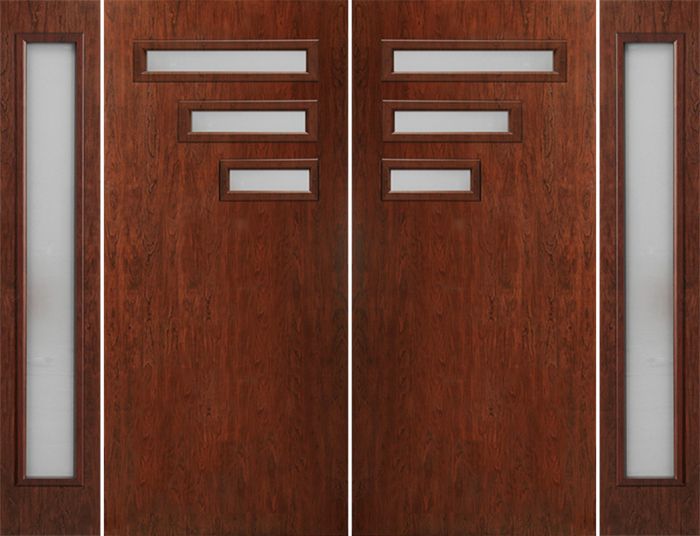 WDMA 112x80 Door (9ft4in by 6ft8in) Exterior Cherry Contemporary Modern 3 Lite Double Entry Door Sidelights FC522