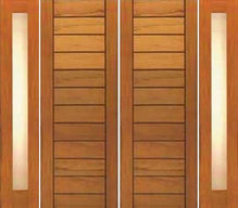 WDMA 120x80 Door (10ft by 6ft8in) Exterior Tropical Hardwood Double Door Two Sidelights Contemporary Horizontal Groove Panel
