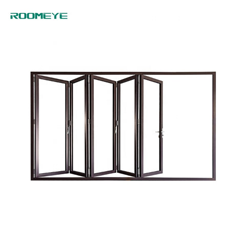 Product Description Bi-folding door is suitable for both commercial and residential construction. Multi- configuration provides you more choices. Low threshold design realizes barrier free passage. Product Name Roomeye aluminum bi folding door( 80 series) Material Aluminum thermal break profile 2.0mm-6063-T5 Color Customized Roller Type Stainless steel Glass Double tempered glass(5mm+20A+5mm)...