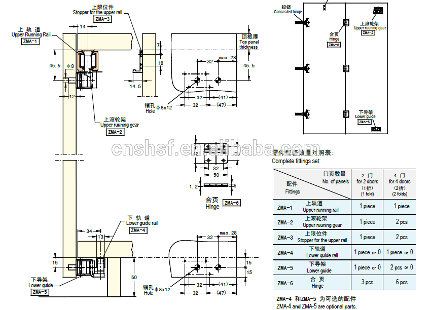 aluminum sliding door track and rollers folding doors ZMA on China WDMA