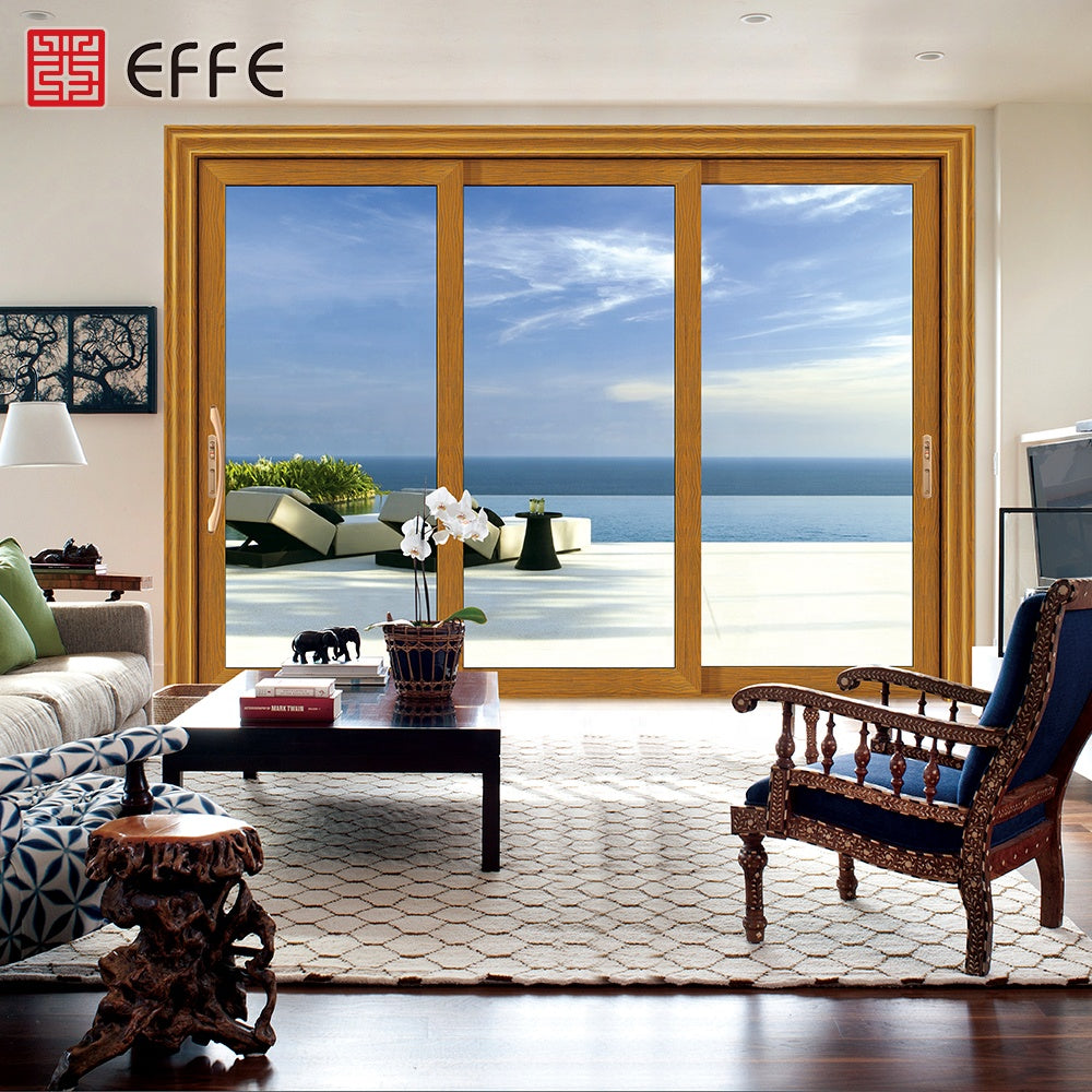 aluminium panel european style french exterior sound proof triple sliding door Type triple sliding door Aluminum profiles Material: aluminum alloy 6063-T5 Surface treatment: wood grain powder coated, electrophoresis, anodize, sandblasting, etc. Color: gray /champagne color, /wood grain/ white /green /black and customized, etc. Thickness: 1.6mm-2.0mm Glass Material: Double glass, tempered glass,...