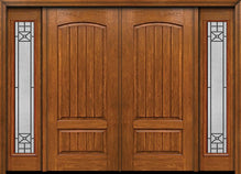 WDMA 96x80 Door (8ft by 6ft8in) Exterior Cherry Plank Two Panel Double Entry Door Sidelights Full Lite TP Glass