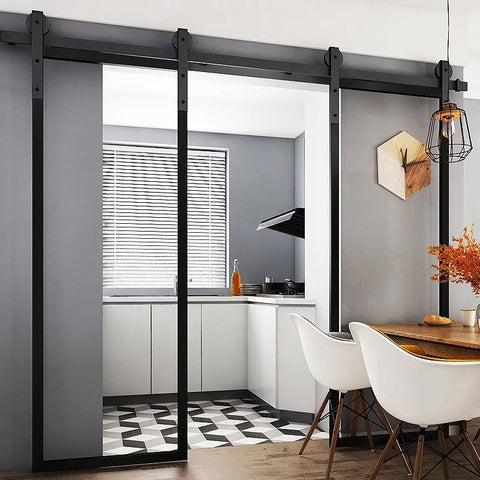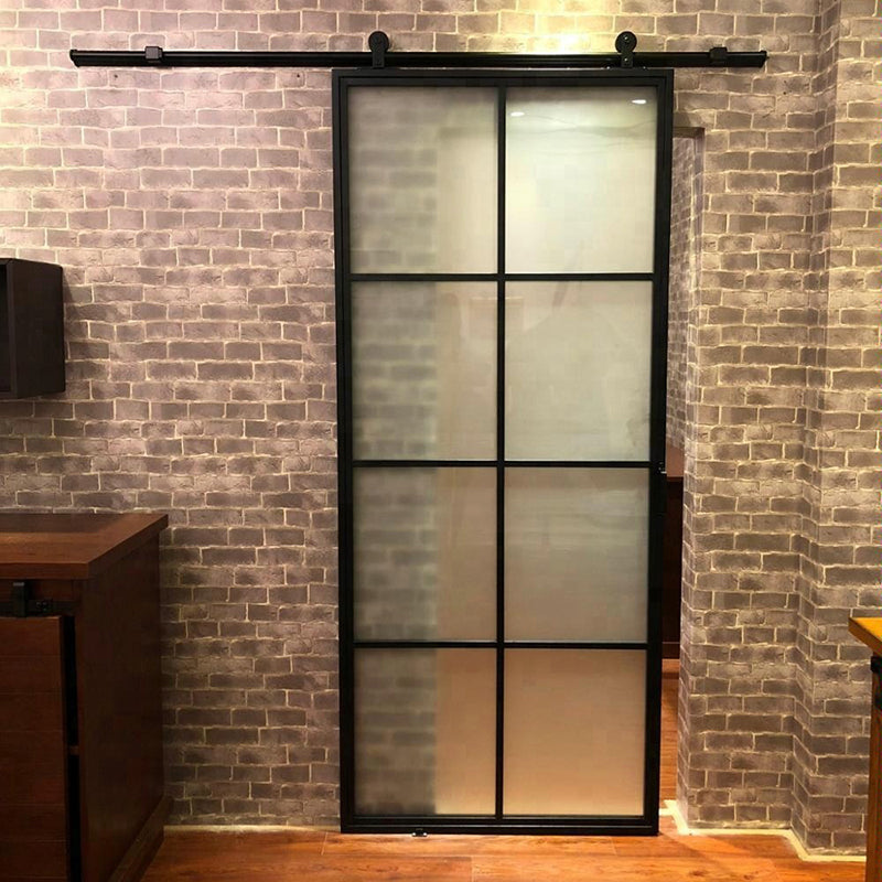 WDMA Metal framed glass sliding doors with barn door hardware kit