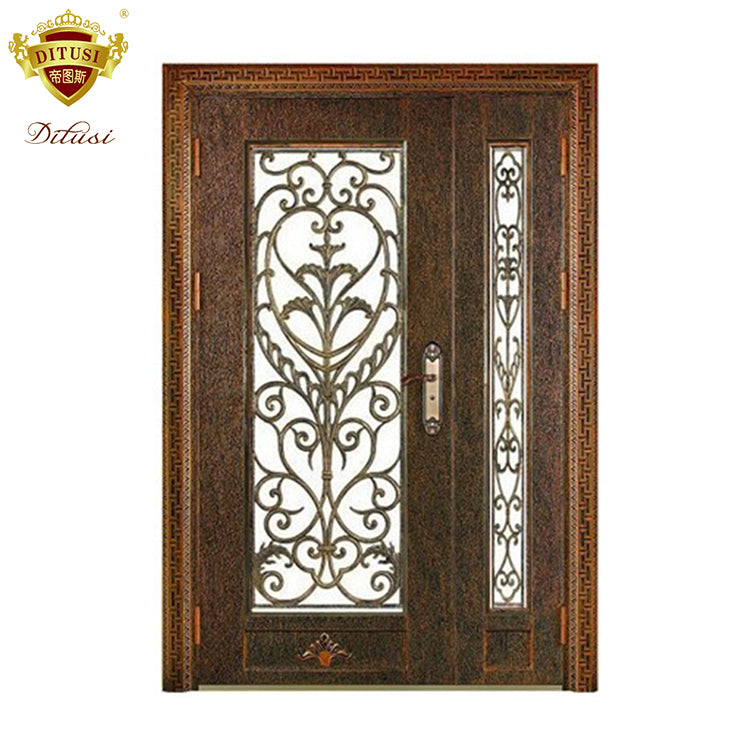 Product Description Model HLJ07 Products Name Wrought iron door Material galvanized steel Feature anti rusting, anti fade, moistureproof, low maintance Color white, red bronze, golden bronze, green bronze Size standard size: 2080*980*100mm, customized size is welcomed. Design choose from catalog Open style outward or inward opening Surface finishing spray paint...