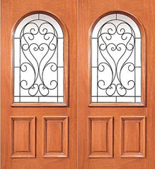 WDMA 72x96 Door (6ft by 8ft) Exterior Mahogany Oval Lite Double Door with Ironwork