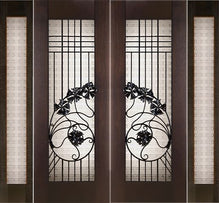 WDMA 96x96 Door (8ft by 8ft) Exterior Mahogany Double 2-1/4in Thick Doors Sidelights Art Glass Iron Work