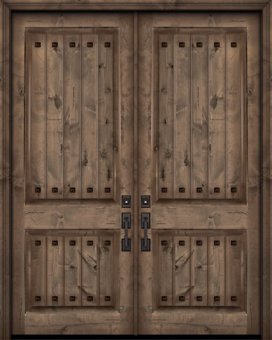 WDMA 84x96 Door (7ft by 8ft) Exterior Knotty Alder 42in x 96in Double 2 Panel V-Grooved Estancia Alder Door with Clavos