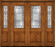 WDMA 88x96 Door (7ft4in by 8ft) Exterior Knotty Alder 96in Alder Rustic V-Grooved Panel 2/3 Lite Double Entry Door Sidelights Ashbury Glass