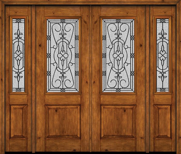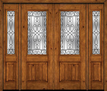 WDMA 88x96 Door (7ft4in by 8ft) Exterior Knotty Alder 96in Alder Rustic Plain Panel 2/3 Lite Double Entry Door Sidelights Jacinto Glass