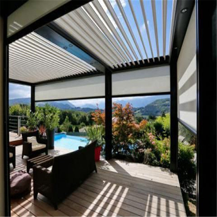 Motorized Solar Shade Electric Sunroof Garden Pergola automatic Swimming Pool Covers Louver Roof Aluminum Pergola