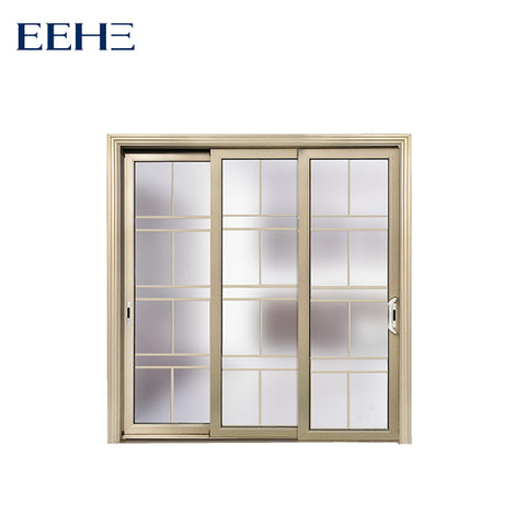 Type aluminum Sliding door Aluminum profiles Material: aluminum alloy 6063-T5 Color: gray/champagne color/wood grain/white/black or other customized colors Thickness: 1.2mm/1.4mm/2.0mm/2.5mm, etc Surface finish 1.powder coating 2.electrophoresis 3.heat transfer for wood grain 4.PVDF coating Glass Material : Single glass,Double glass,tempered glass , floating glass ,insulating glass, reflective glass,laminated glass,low-E glass Color : clear /gray /green/frosted, etc Single :4mm to 12mm Double :5mm+9A+5mm 6mm+12A+6mm, etc Triple : 5mm+6A+5mm+6A+5mm,etc Sealing EPDM rubber and silicone sealant Hardware SIEGENIA,HOPO,HOPPE,Kinglong,Chinese Brand,etc Package Protection foam+heat contracted plastic film / wooden packing / Metal pallet or depending on clients' special requirements Founded in 2008, Guangdong EHE Doors&Windows Technology...