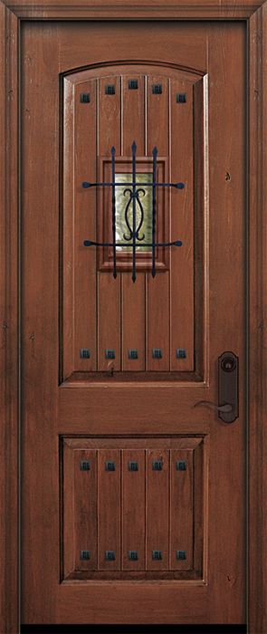 WDMA 36x96 Door (3ft by 8ft) Exterior Knotty Alder IMPACT | 96in 2 Panel Arch V-Groove Door with Speakeasy / Clavos