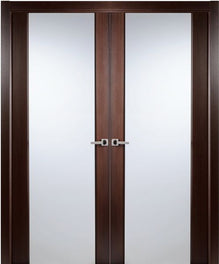 WDMA 48x80 Door (4ft by 6ft8in) Interior Pocket Wenge Contemporary African Double Door Lined Frosted Glass