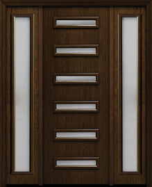 WDMA 54x96 Door (4ft6in by 8ft) Exterior Cherry 96in Contemporary Four Lite Single Fiberglass Entry Door Sidelights